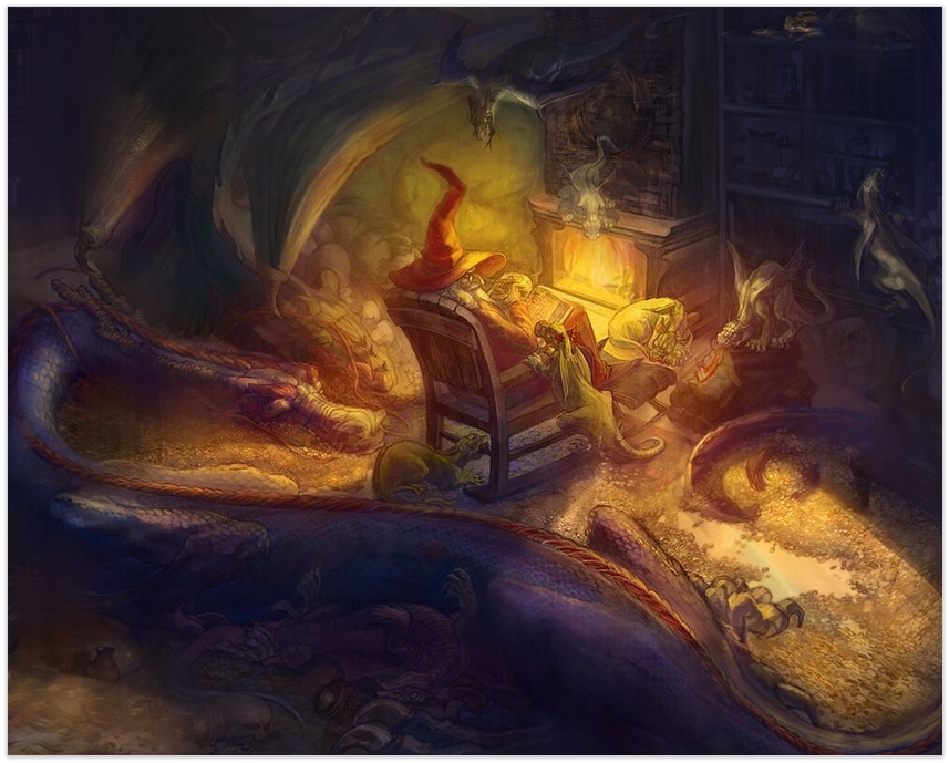 27.06.2017 в 21:12у тебя еще все распадается не только потому что все по тону одинаковое, но и еще потому что светотень слабая. В смысле у тебя есть откровенный источник света, а никакой атмосферы, освещения и падающих теней от него нет. Свет от огня распределяется по форме объектов, часть уводя в тень, часть оставляя освещенным, у тебя этого даже близко нет. И отдельно цвет - освещаемое огнем будет откровенно теплым, а тень уходить в холод.